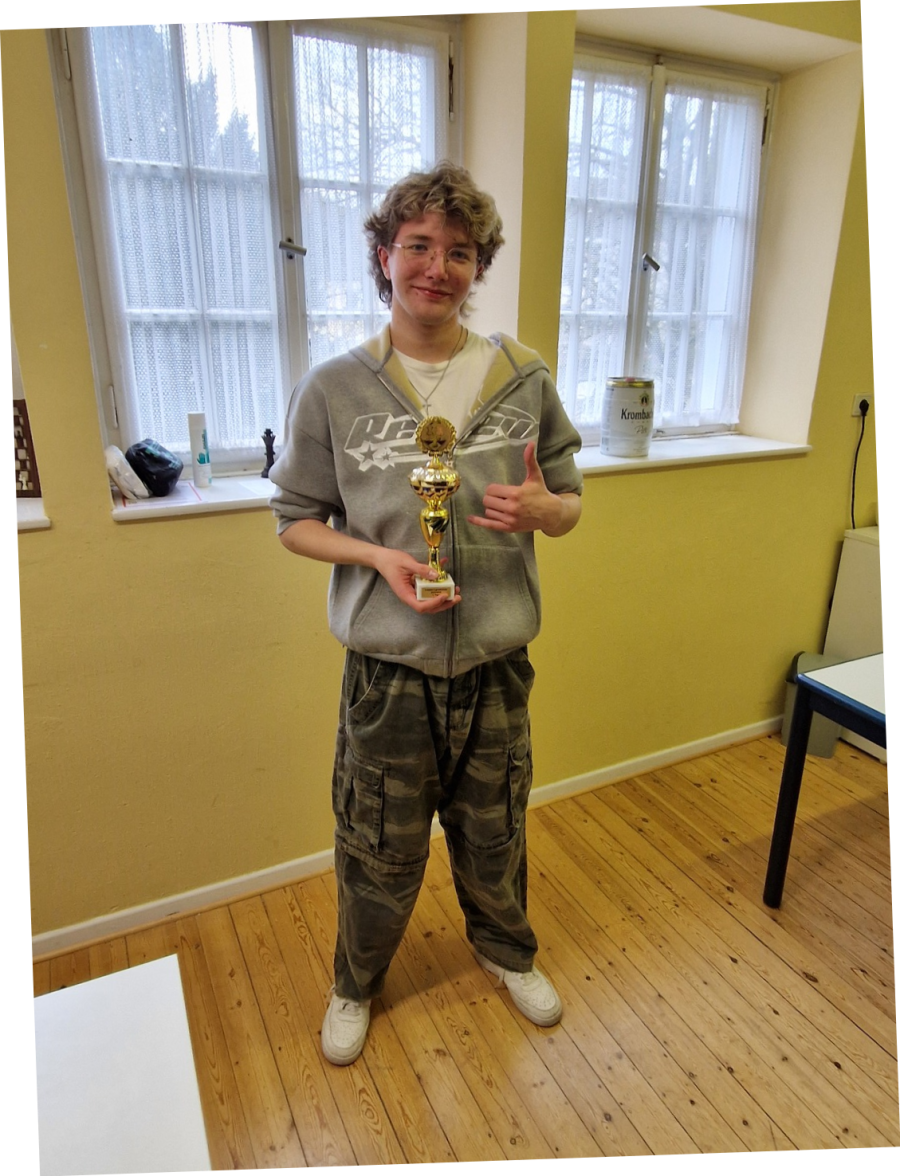 Eric Schmidt gewann mit 5,5 Punkten das Turnier und gleichzeitig die U20-Konkurrenz. Dean Cremer